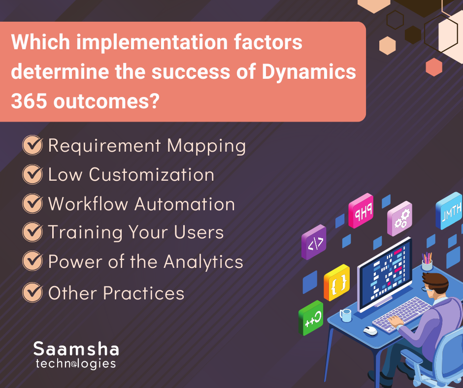 Which implementation factors determine the success of Dynamics 365 outcomes?